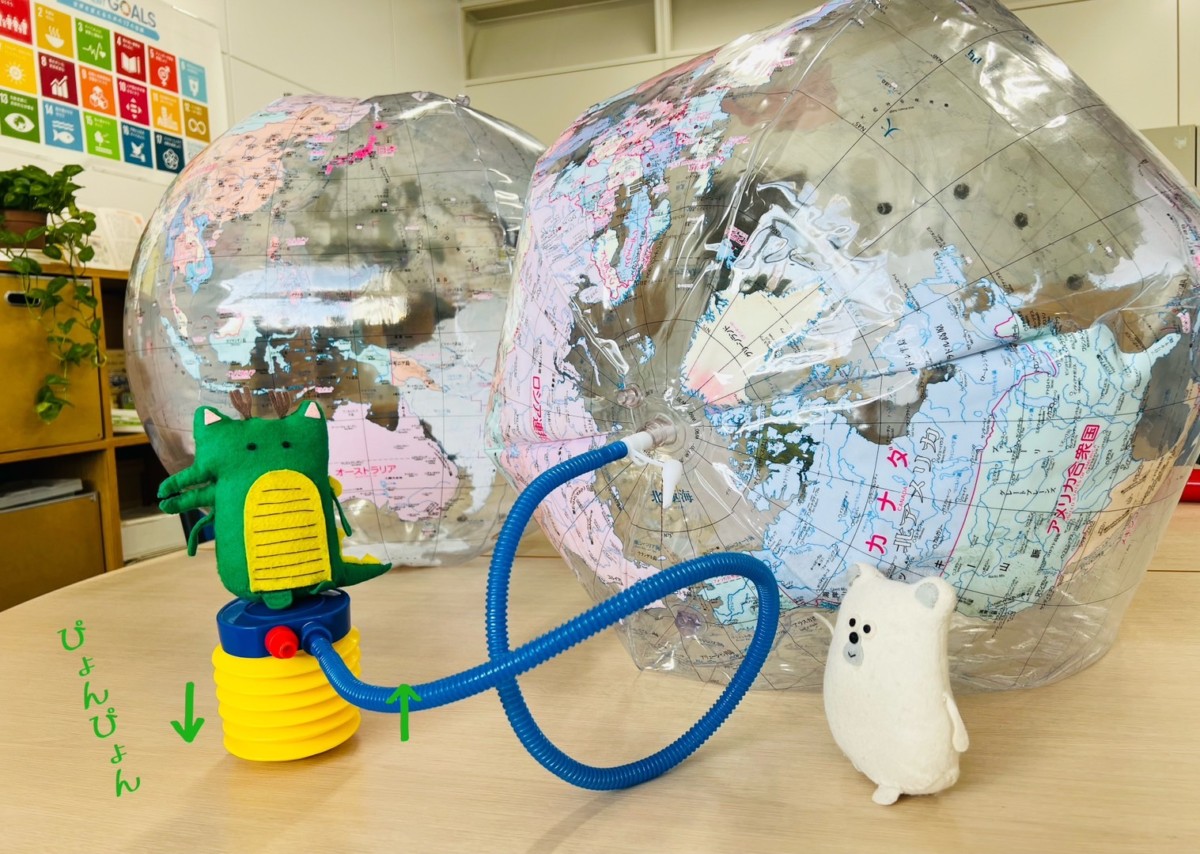 膨らますと大人が両腕で抱えられるくらいの大きさです。