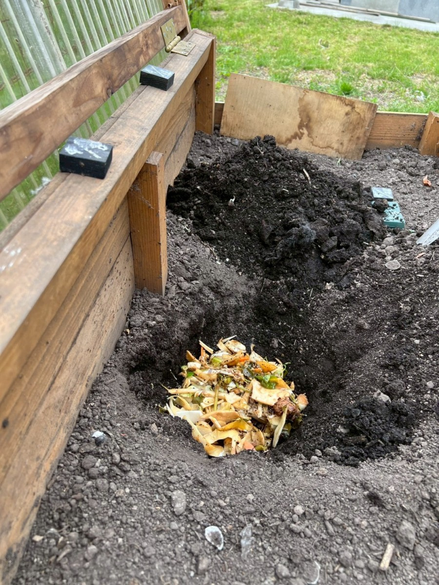 20㎝ほど穴を掘って、生ごみを入れ