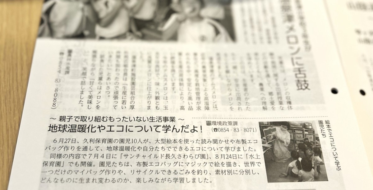 大田市が発行する「広報おおだ」9月号で、私たち「エコサポしまね」が幼稚園・保育園で行う「親子で学ぶミニエコ講座」の様子が紹介されました⍥*