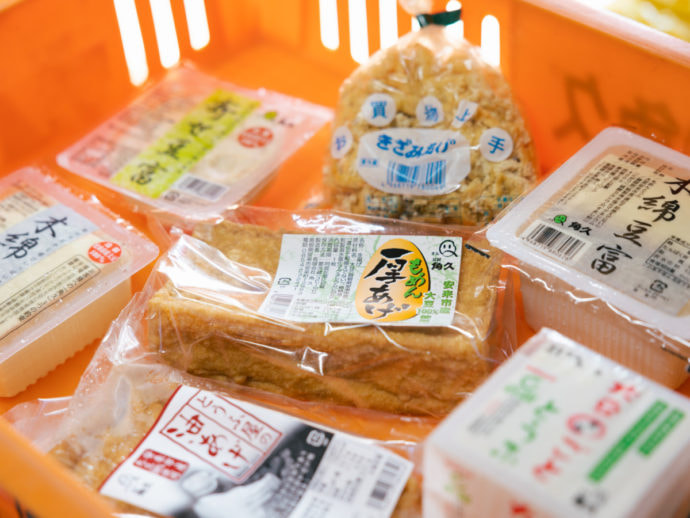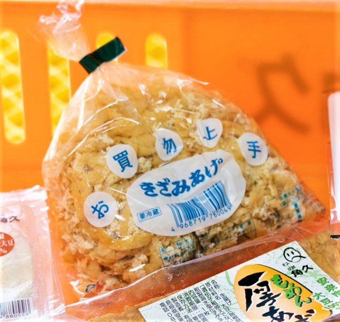 規格外の油揚げや切れ端を、細かく刻んで「きざみあげ」にし、規格外の豆腐はがんもどきにして販売しています。