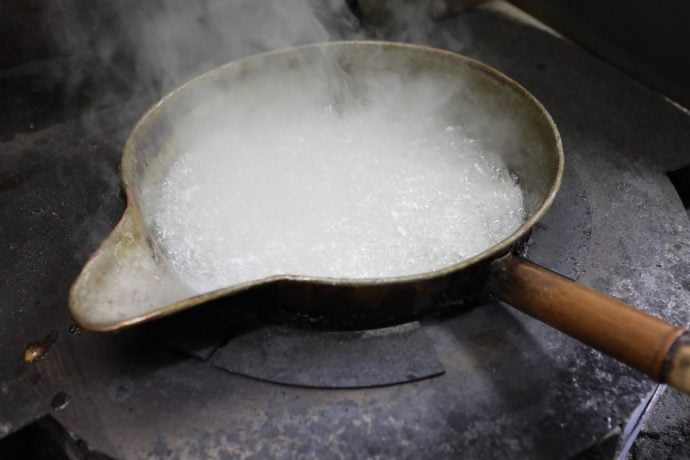 生姜糖を煮詰めていくと、出来上がりの瞬間があります。