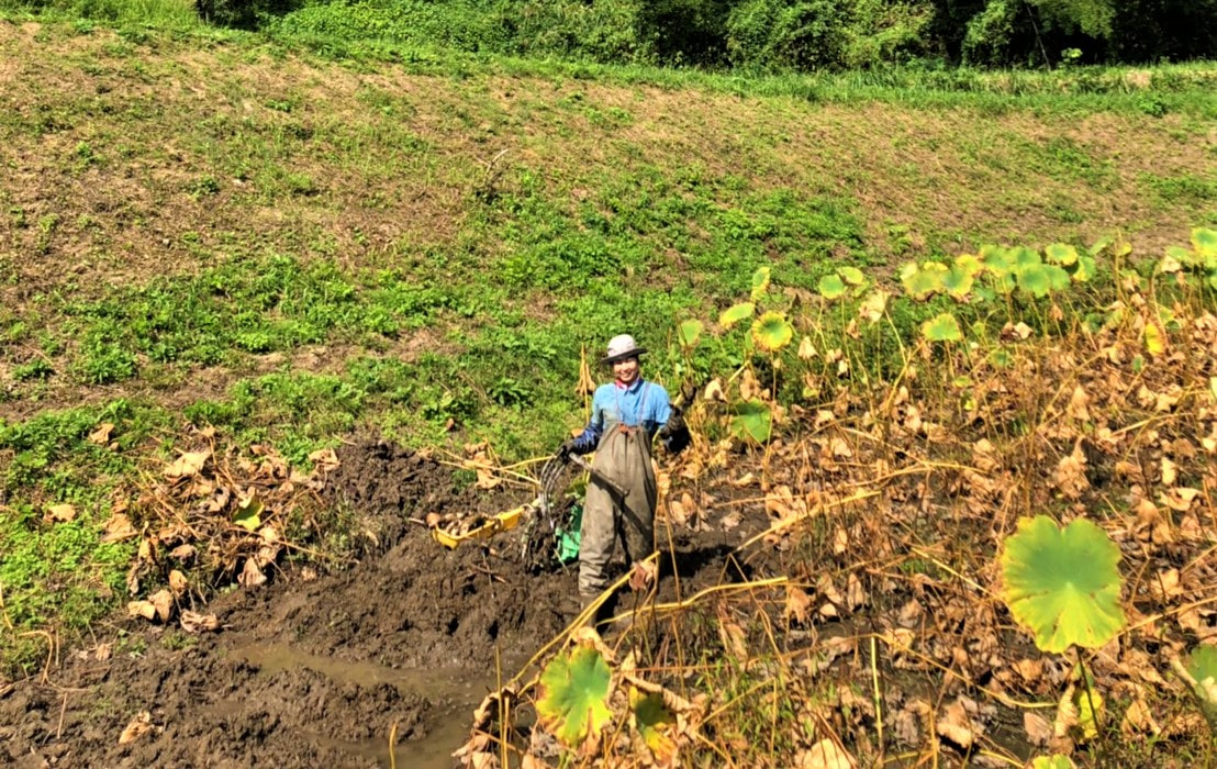 今はえーひだの事業と並行して無農薬のレンコン栽培をしているんですが、懇意になった農家さんに農地を紹介してもらったんですよ。