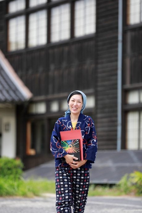 もんぺ姿で出迎えてくれた三品さんは、とてもチャーミングな女性でした!!