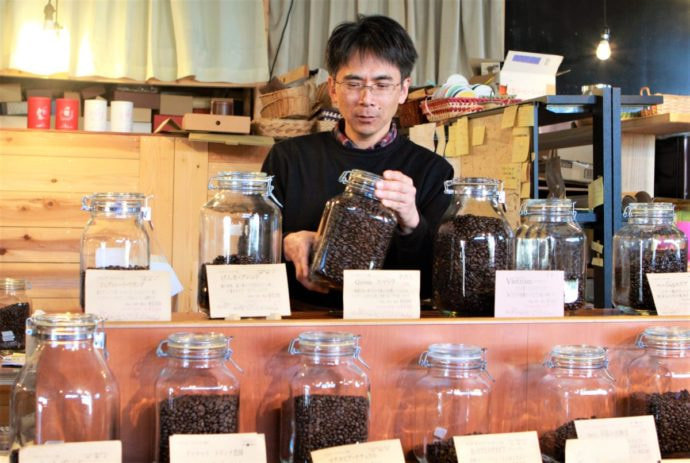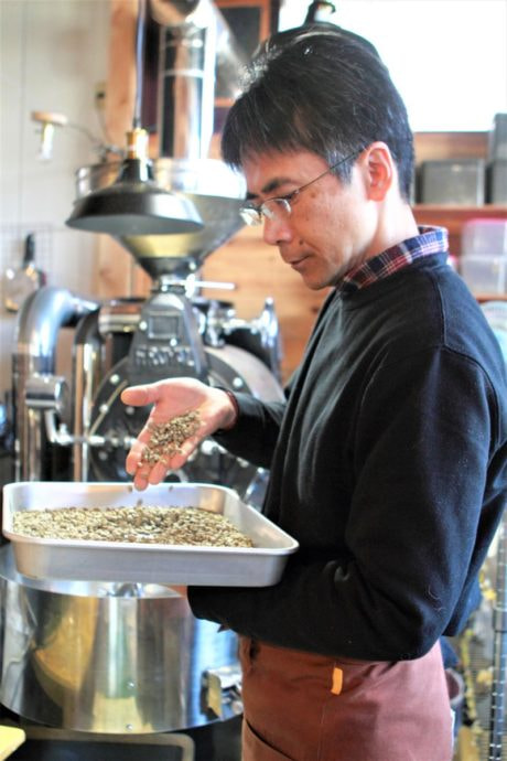 浜田市で自家焙煎珈琲店「ナマケモノ珈琲」を営む中村聡(なかむら あきら)さん。