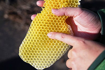ミツバチは「蜜蝋(ミツロウ)」という物質を分泌して巣を作るんです。