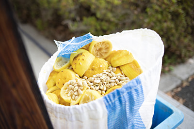 副原料に使う果物の皮を剥いたり、傷んだ部分を除けたり、絞るとかすが出ます。