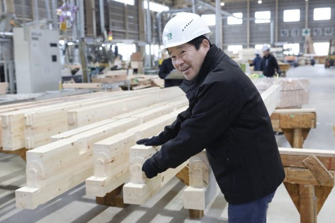 現在は製材所とプレカット工場、また県内外に営業所や支店をもち、海外にもネットワークがある企業です。