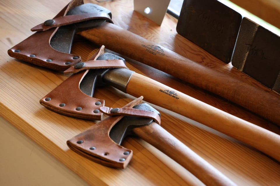 薪割りに使うスウェーデン製の木製の斧などのアイテムも、皆さんに人気です。