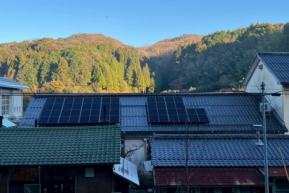 夜カフェの照明は、昼間に屋根の上にある太陽光パネルで発電したものを蓄電池にためた電力を使っています。
