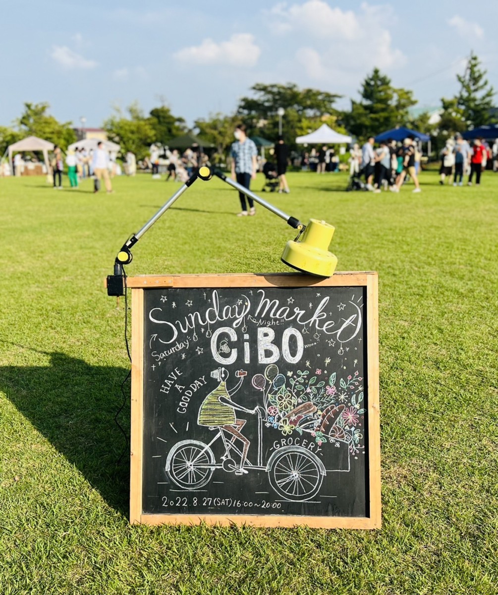 毎月第4日曜の朝9時。出雲市役所裏の広々とした芝生公園「出雲だんだん広場」にテントがいくつも並ぶ「Sunday Market CiBO(サンデーマーケットチーボ)」。