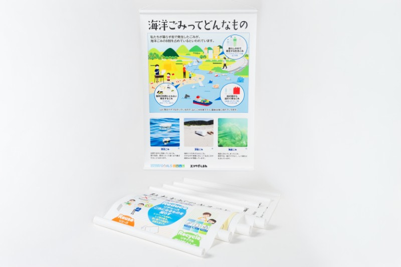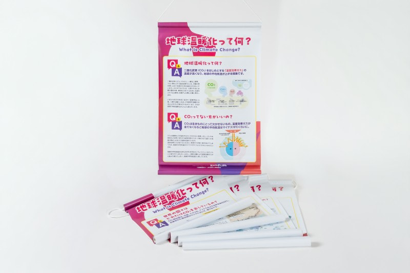 環境展示やイベント、学校の授業等で使うタペストリーなどの機材を貸し出しています。