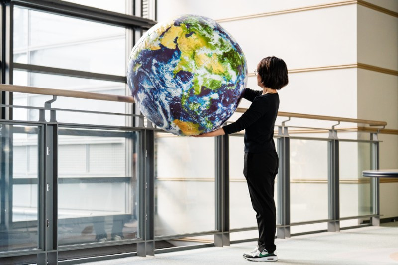 宇宙から見た地球のボール。授業で地球全体の話をする際や、展示に使用。※地面に置いて蹴るなどの使用はできません