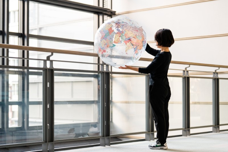 各国のCO₂排出量の話や地球全体の環境の話などをする際はこのアースボールで国の位置や大きさを見てみましょう。(透明、日本語と英語の併記)※地面に置いて蹴るなどの使用はできません。