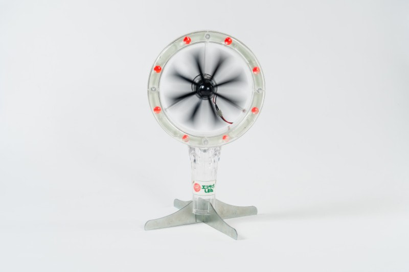うちわで羽根を動かし、周りのLED電球を点けましょう。