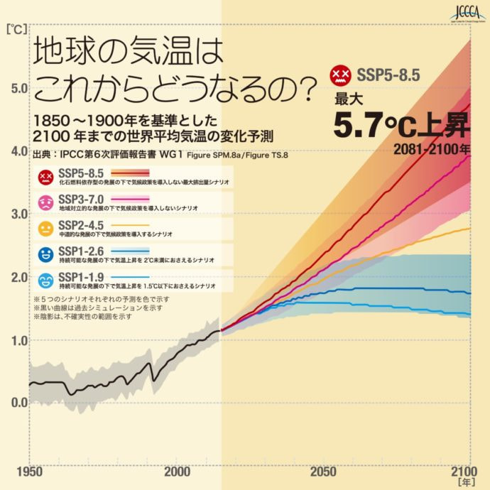 地球温暖化のしくみや、気温の変化・影響についてデータやグラフで紹介しています。