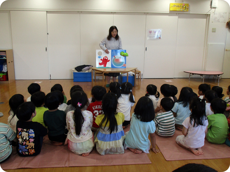 絵本(地球温暖化防止、節電、節水がテーマのもの)の読み聞かせを行います。事前に先生と打ち合わせで確認します。