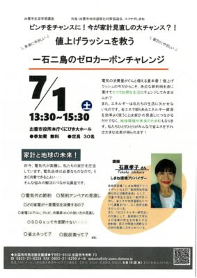 (しまね環境アドバイザー、島根県地球温暖化防止活動推進員、松江エネルギー研究会代表)