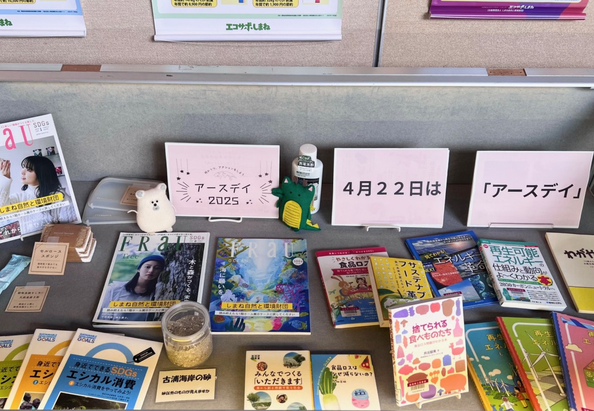 併せて、島根県立図書館1階ホールでは、図書館×エコサポタイアップ展示「アースデイ2025」を開催中です!