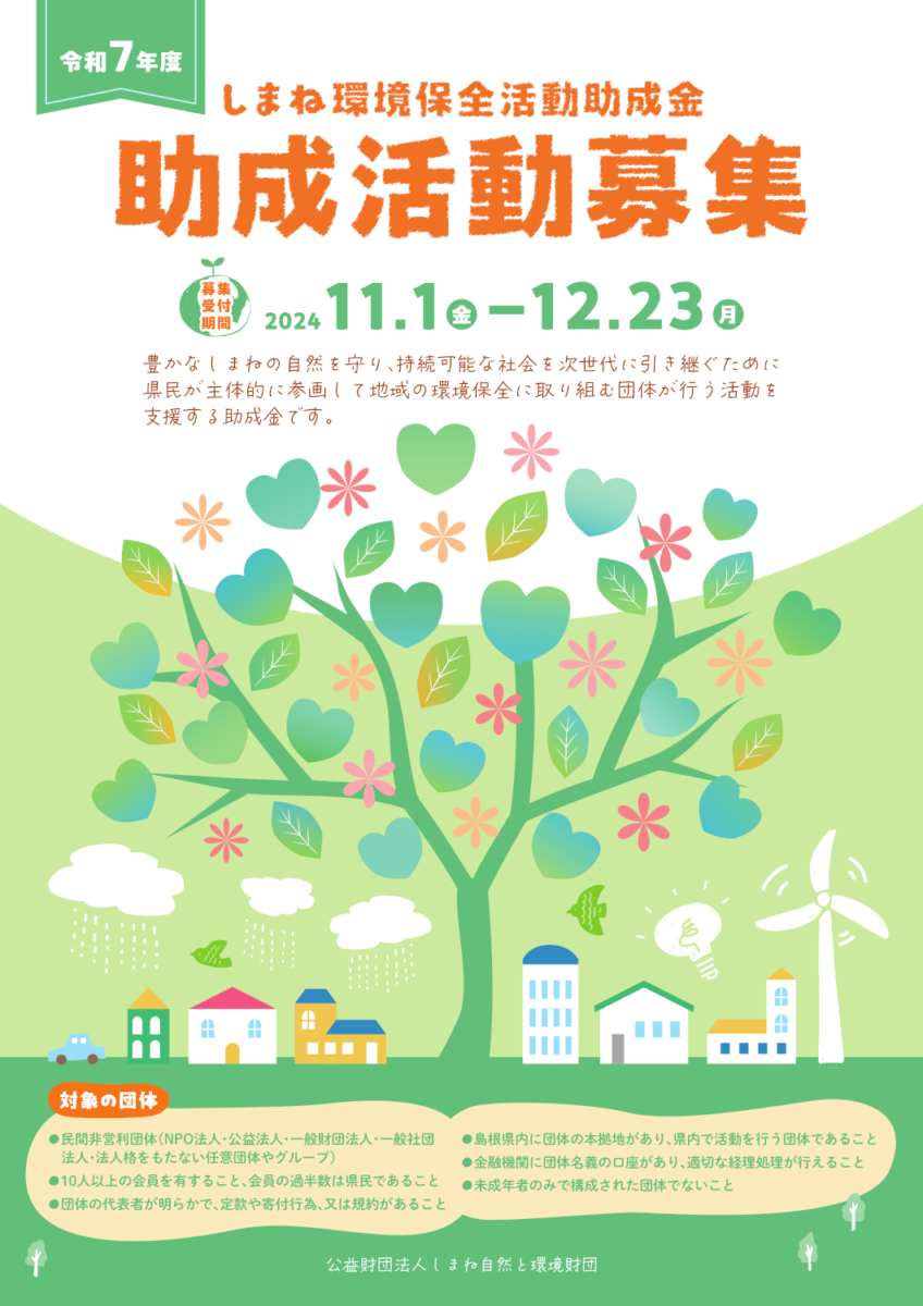 令和7年度「しまね環境保全活動助成金」募集開始しました