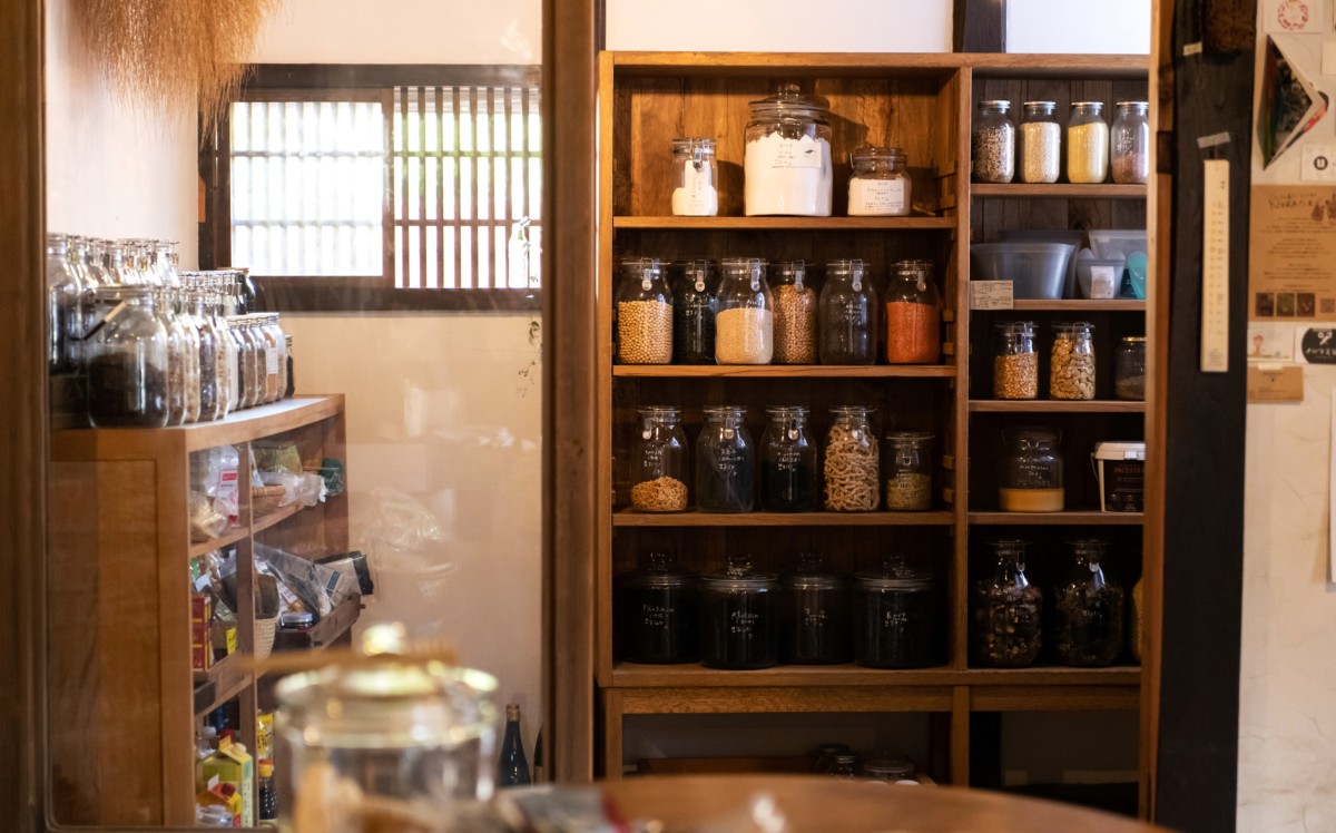 棚にたくさん並んだ瓶には、ドライフルーツやナッツ類、スパイス類、豆類、穀物、粉ものなど約70種類の商品が入っており、ここでは好きなものを好きなだけ「量り売り」というスタイルで買うことができます。