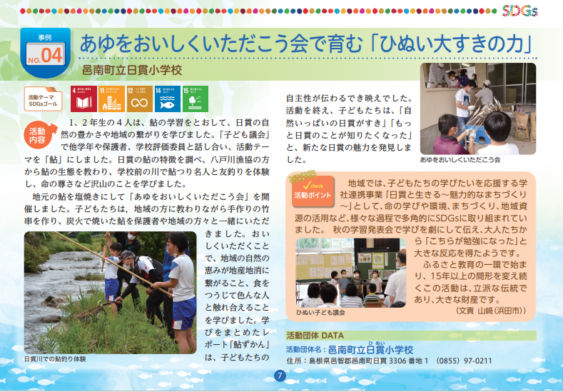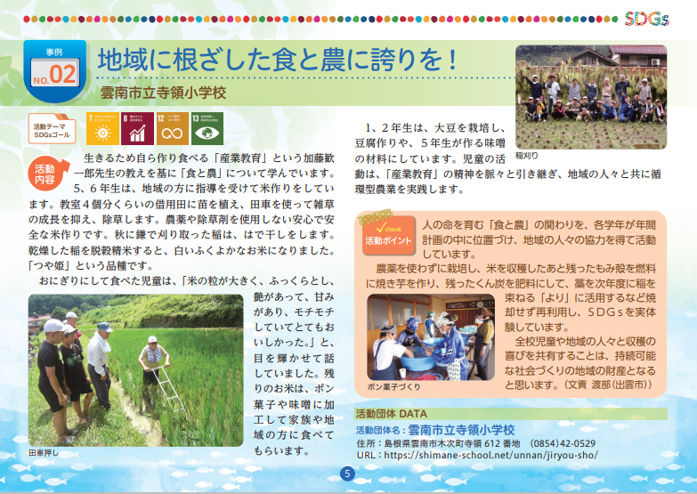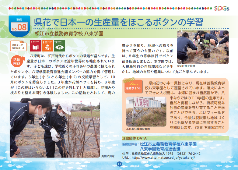 1.雲南市立田井小学校、2.雲南市立寺領小学校、3.美郷町立大和小学校、4.邑南町立日貫小学校、5.江津市立桜江小学校、6.津和野町立日原小学校、7.西ノ島町立西ノ島小学校、8.松江市立義務教育学校 八束学園、9.出雲市立浜山中学校、10.島根県立中央高等学校