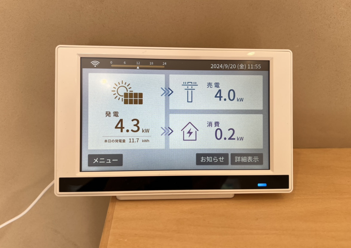 発電状況はモニターで確認。「今日はけっこう発電できている!」なんて楽しみが増えるかも♪